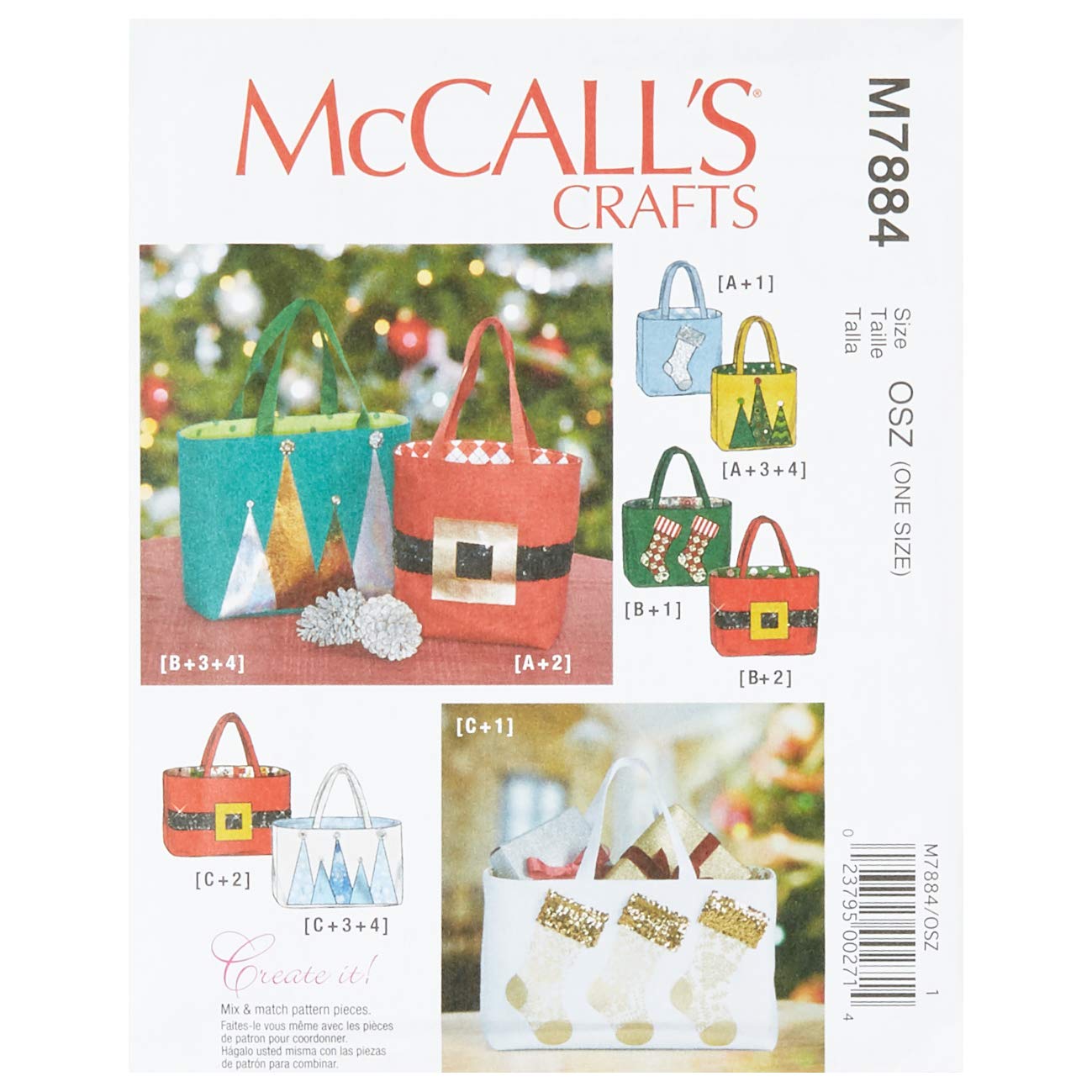 Amazon Com Mccall S Patterns M7884 Create It Holiday Gift Bags Osz One Size Multi Arts Crafts Sewing